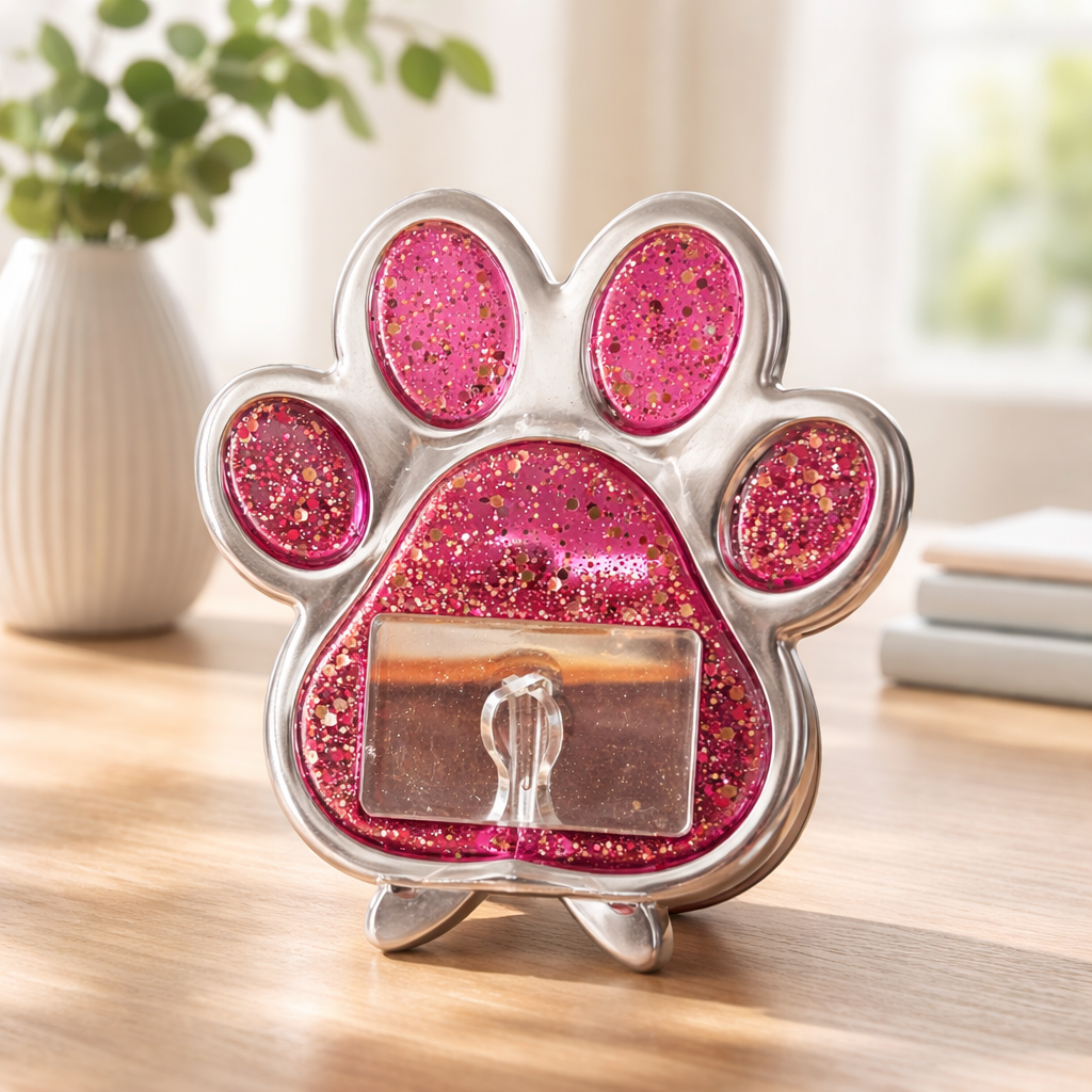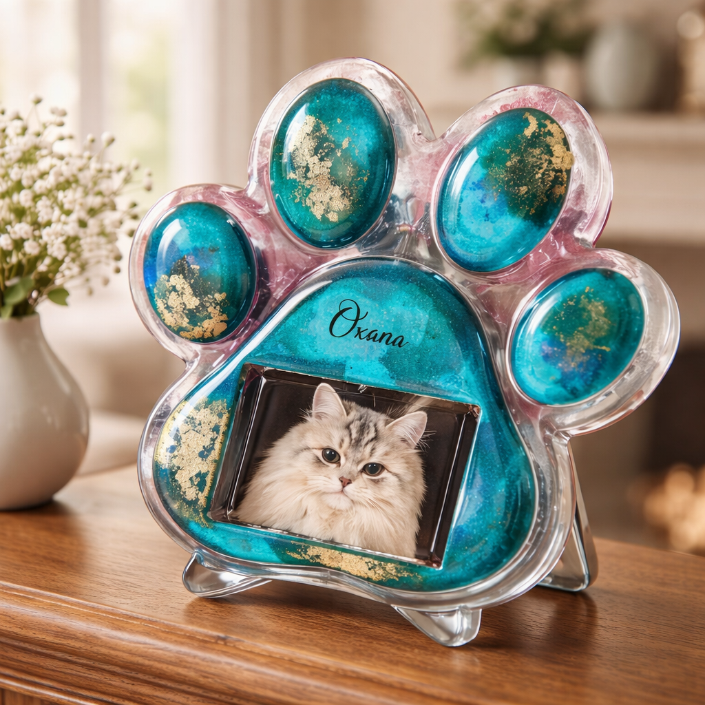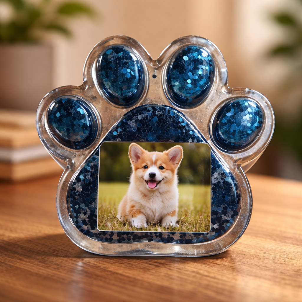 Cadre en forme de patte en résine époxy pour y insérer une photo de votre animal . Plusieurs couleurs possibles, …